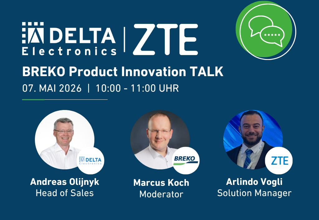 Gemeinsam mit den BREKO eG Partnern DCT DELTA AG und ZTE Deutschland lädt die BREKO eG Sie herzlich zum nächsten BREKO Product Innovation TALK am 07.05.2026 von 10:00 bis 11:00 Uhr ein.