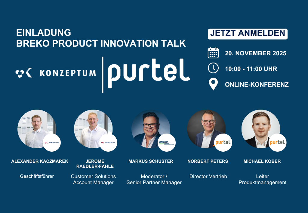 Die BREKO eG lädt Sie herzlich zum BREKO Product Innovation TALK am 20. November 2025 um 10:00 Uhr ein.